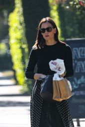 Jennifer Garner was spotted leaving the United Methodist Church on Sunday, November 10th, 2024. The actress looked stylish in a black sweater and a polka dot skirt. She was carrying a few bags, including one from a local bakery. Garner is known for her devout faith, and she often attends church services with her children. She is also a vocal supporter of various charities, including the Save the Children Foundation.
