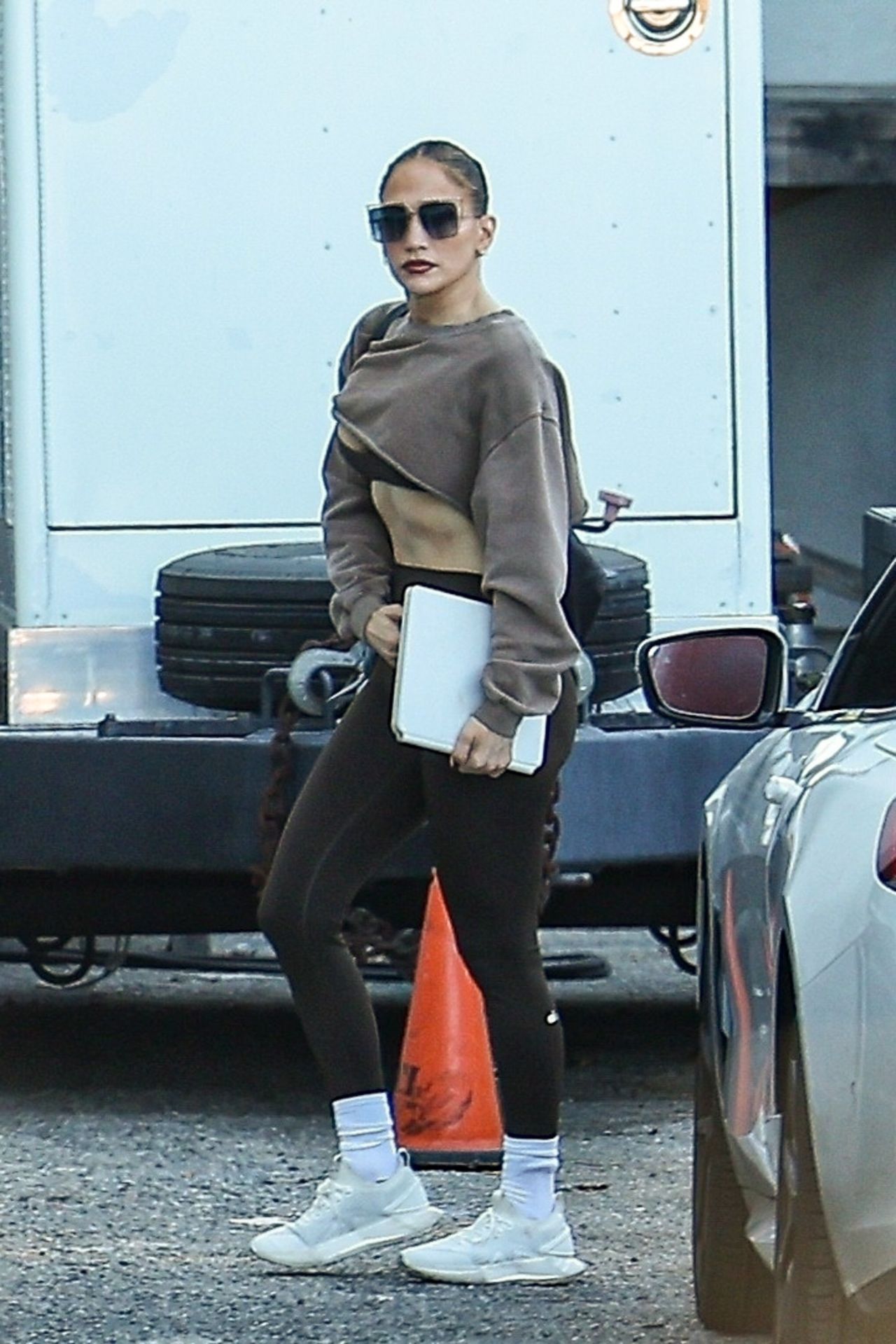 Jennifer Lopez proves that comfort and style can coexist! Spotted arriving at a studio in Los Angeles, J.Lo rocked a chic, cropped sweatshirt paired with matching leggings, showcasing her enviable physique.
