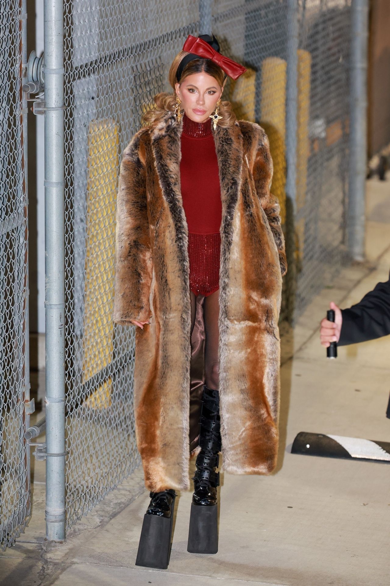Kate Beckinsale, never one to shy away from making a statement, turned heads outside Jimmy Kimmel Live! with an ensemble that screamed high fashion meets rock-and-roll edge. The actress, known for her impeccable style and daring choices, strutted her stuff in a floor-length faux fur coat that exuded old Hollywood glamour with a modern twist.