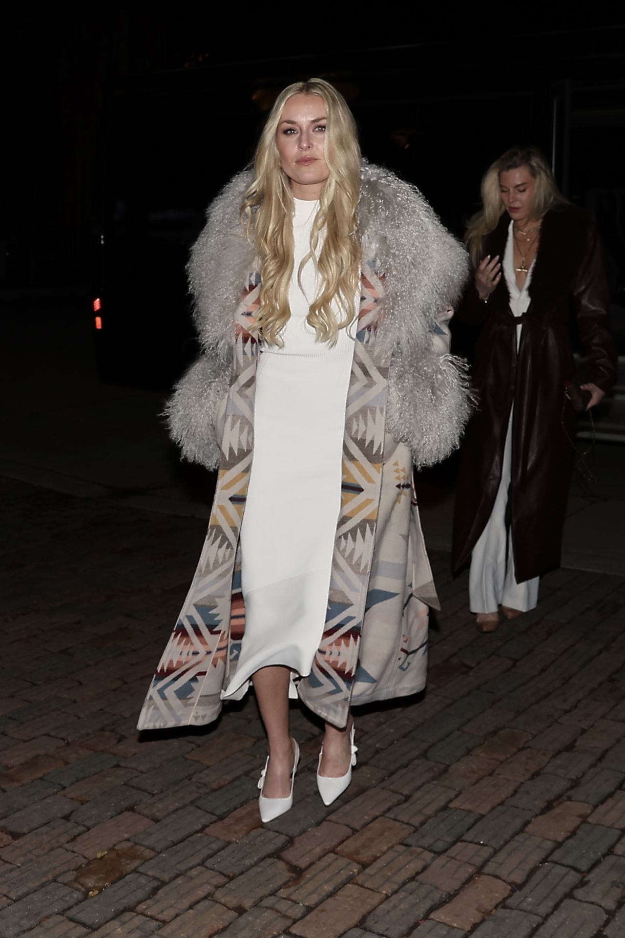 Vonn was accompanied by a friend, who also looked fabulous in a long brown leather coat and white trousers. The pair were seen exiting a building, presumably after a festive holiday gathering.