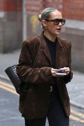 Molly Mae Hague was spotted in Manchester yesterday, looking effortlessly stylish in a casual outfit. The former Love Island star was heading to a business meeting, and she kept things simple and chic in a brown blazer, black jeans, and a pair of nude heels. She accessorized with a pair of sunglasses and a small handbag.