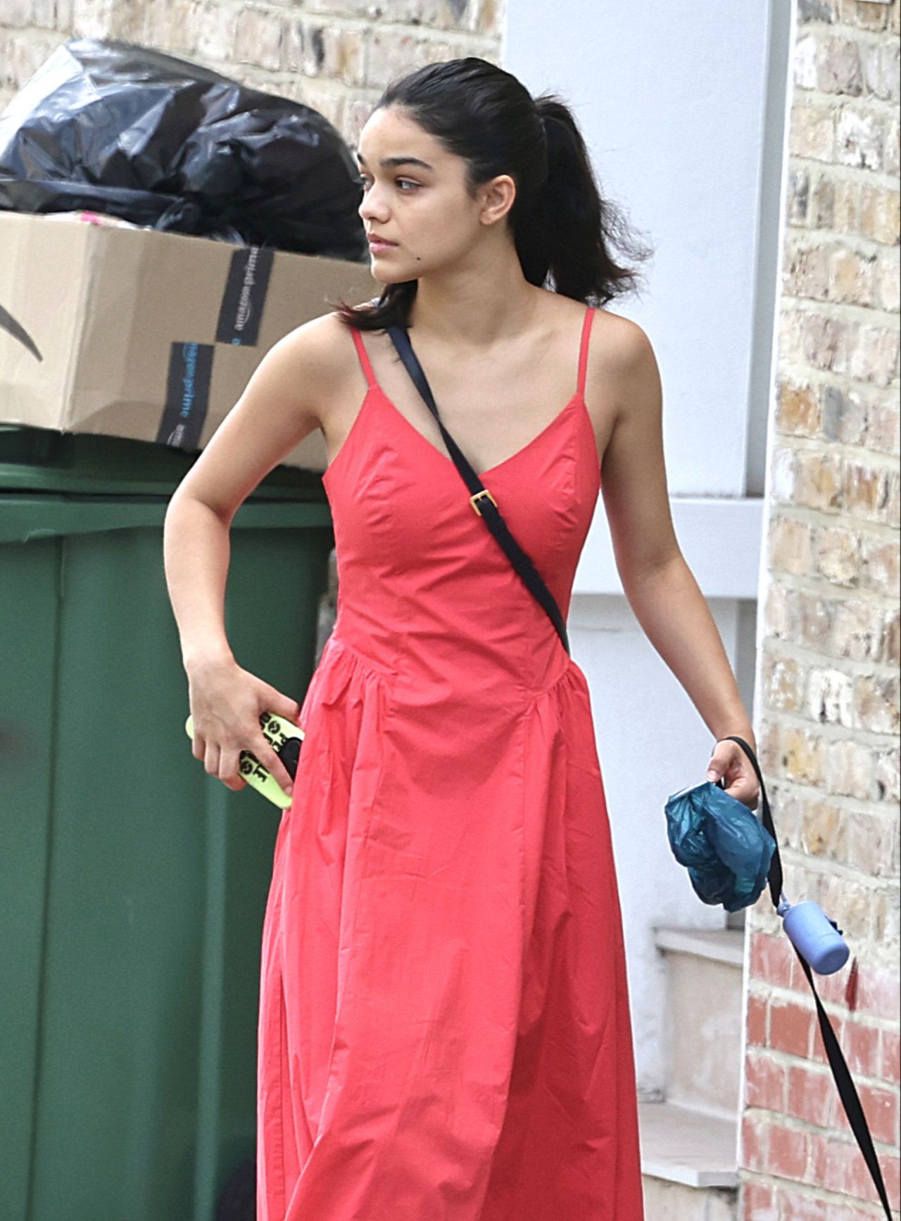 London, July 2025 – Rachel Zegler, the rising star known for her captivating performances, was spotted taking a leisurely stroll through the streets of London today, accompanied by her adorable canine companion. The actress radiated effortless style in a vibrant red sundress that flowed gracefully as she walked. The dress, featuring delicate spaghetti straps and a flattering A-line silhouette, perfectly complemented her radiant complexion.