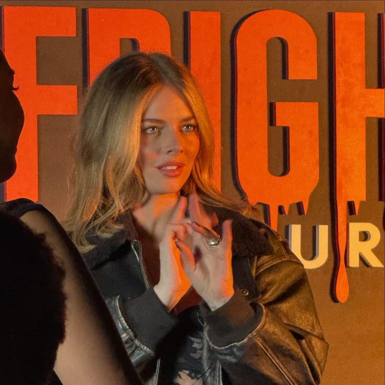 The ever-radiant Samara Weaving graced the Searchlight Studio screening with her captivating presence. The actress was spotted looking effortlessly chic in a stylish black leather jacket, her blonde hair cascading around her shoulders.